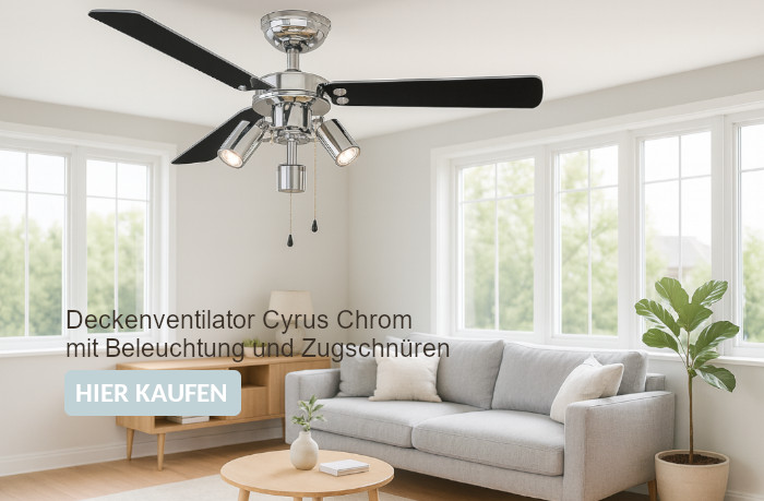 Ob im Sommer oder Winter - unsere Deckenventilatoren zeigen sich immer von ihrer praktischen Seite. An heißen Tagen sparen Sie durch ihre sanfte Kühlung die Kosten für eine Klimaanlage und in der kalten Jahreszeit sorgt die Umwälzwirkung der Blätter für eine bessere Verteilung der Wärme. Insgesamt ist ein Ventilator bei kleineren Räumen oder für den Hausgebrauch viel wirtschaftlicher als der Einsatz von speziellen Heiz- oder Kühlgeräten.